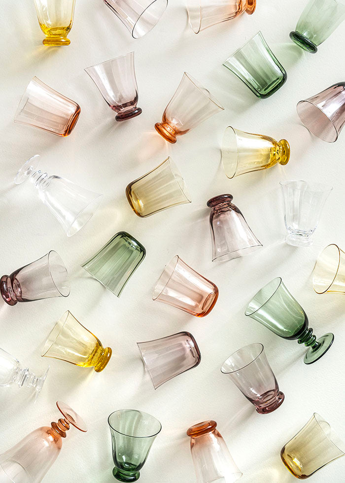 Vores populære Trellis glas er et ikonisk Bungalow produkt. De elegante glas er mund- og formblæste, hvilket gør at hvert glas er unikt. De kan bruges til både vin, vand eller som dessertglas.