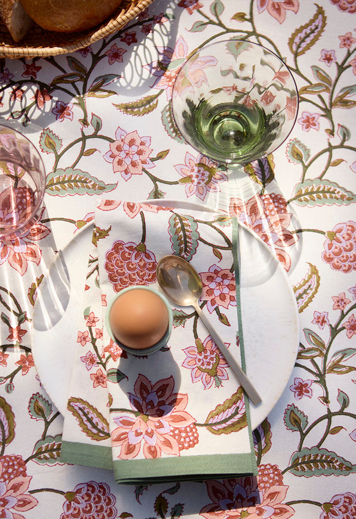 Sæt af 4 stk stofservietter med håndlavet blokprint, 100% bomuld