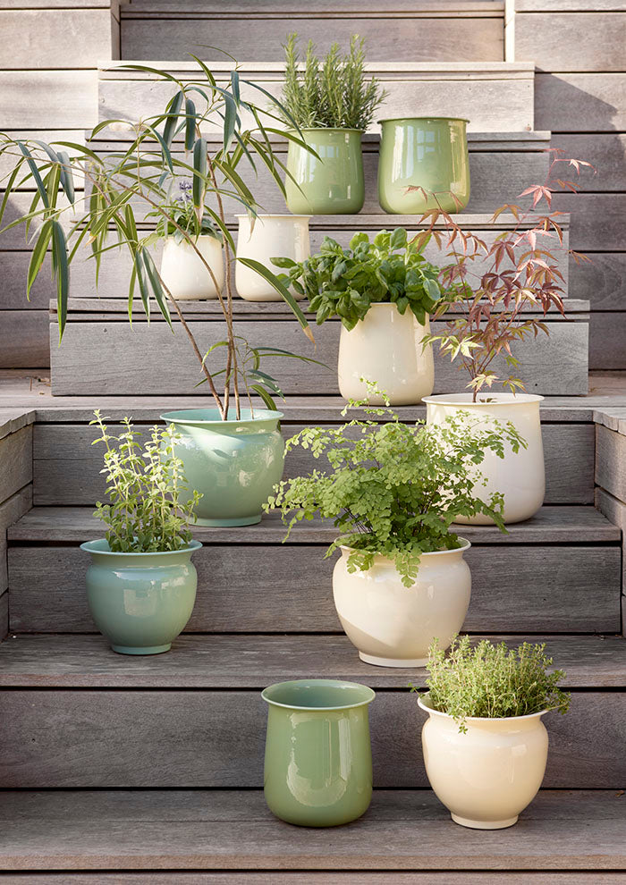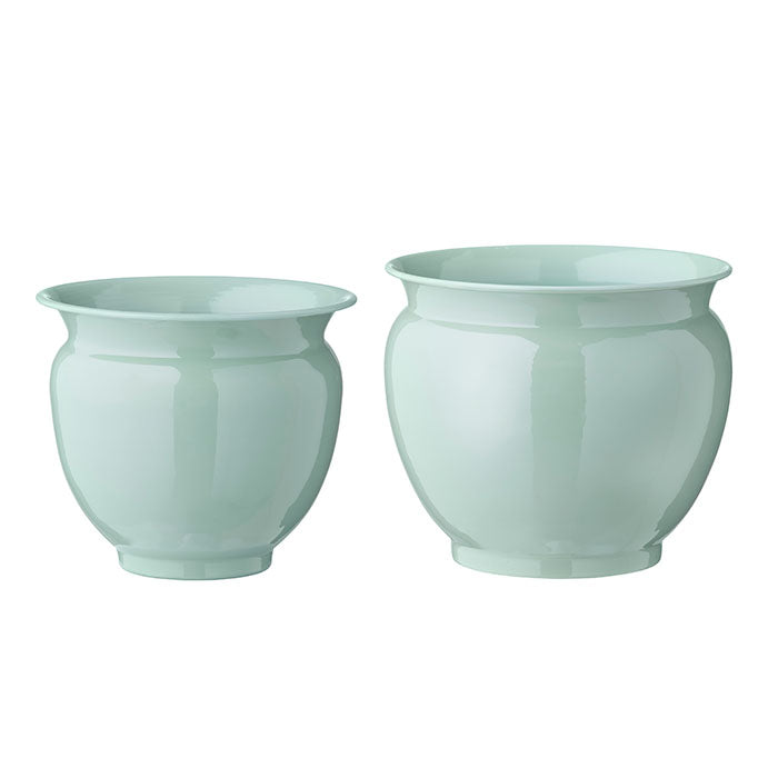Sæt af 2 urtepotter i metal med emaljebelægning
