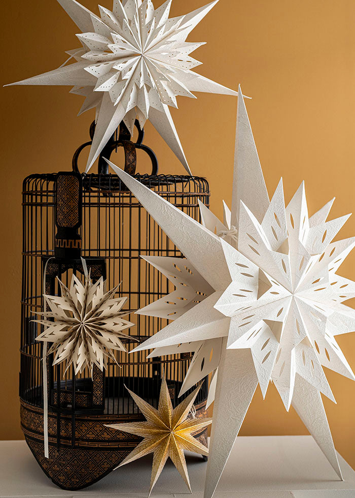 Lad den dekorative stjernelampe lyse dit hjem op i vinterens mørke måneder. Vidste du, at det allerførste produkt fra Bungalow Denmark var en Papirstjernelampe? Dette markerede starten på vores rejse, og i dag, to årtier senere, har vi stadig fornøjelsen af at sælge de smukke stjerner.