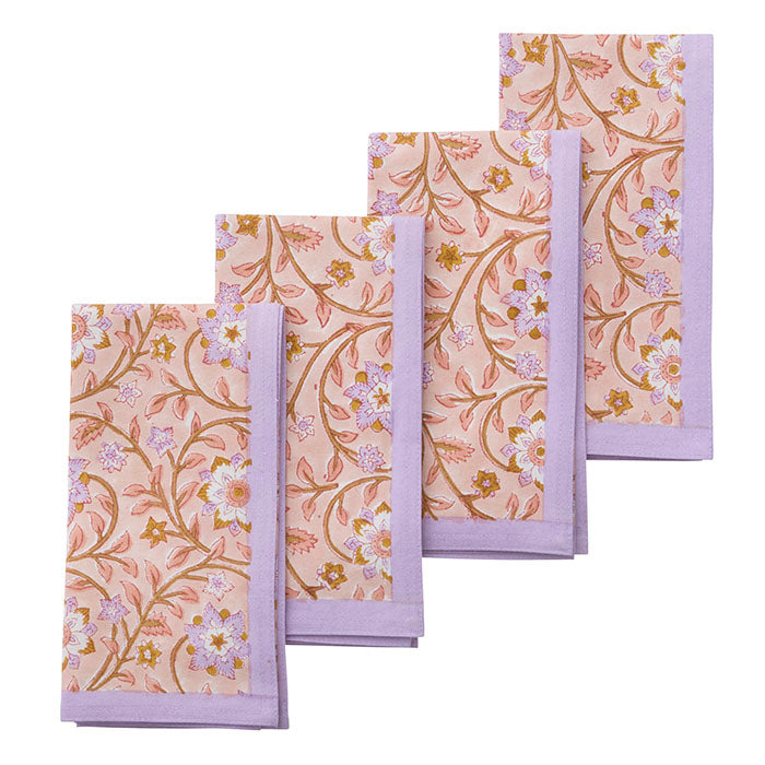 Sæt af 4 stk stofservietter med håndlavet blokprint, 100% bomuld