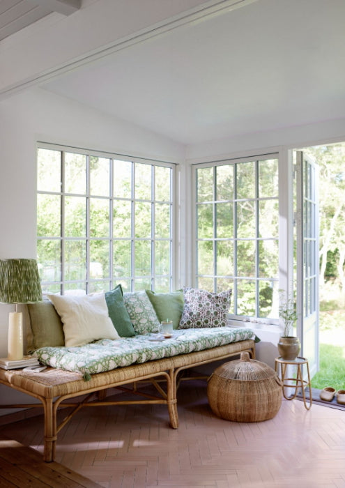 Pudebetræk med håndlavet blokprintet i grønne nuancer. 100% bomuld.