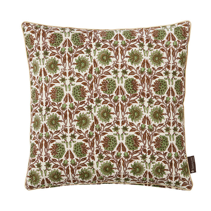 Hos Bungalow er blokprintede tekstiler ikoniske og vi håber at den smukke pude vil skabe glæde i dit hjem.